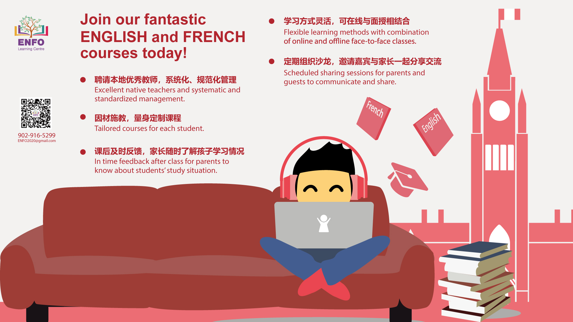 Enjoy high-quality online English and French education at ENFO